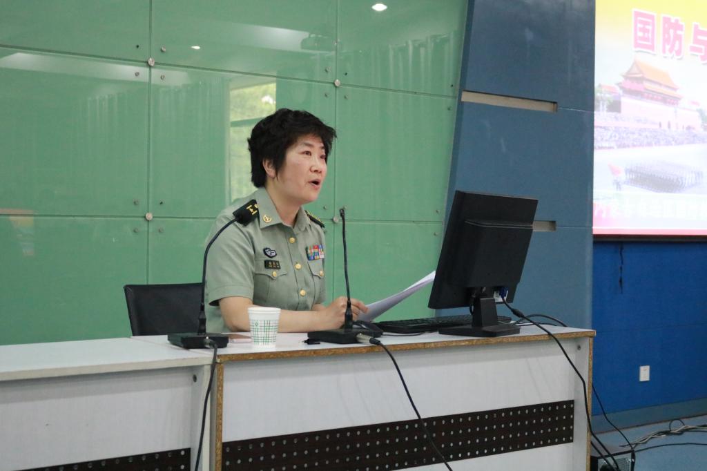6月15日14时30分,内蒙古军区国防教育讲师团成员、内蒙古军区教导大队教研室主任赵凤红大校应邀在北校区经济管理学院116多媒体教室为我校学生开展以“国防与人生”应征政策宣讲,本次活动由学生工作处(武装部)主办、学生社团国防教育协会承办,学生工作处周国权副处长、国防教育协会成员及100余名学生参会。