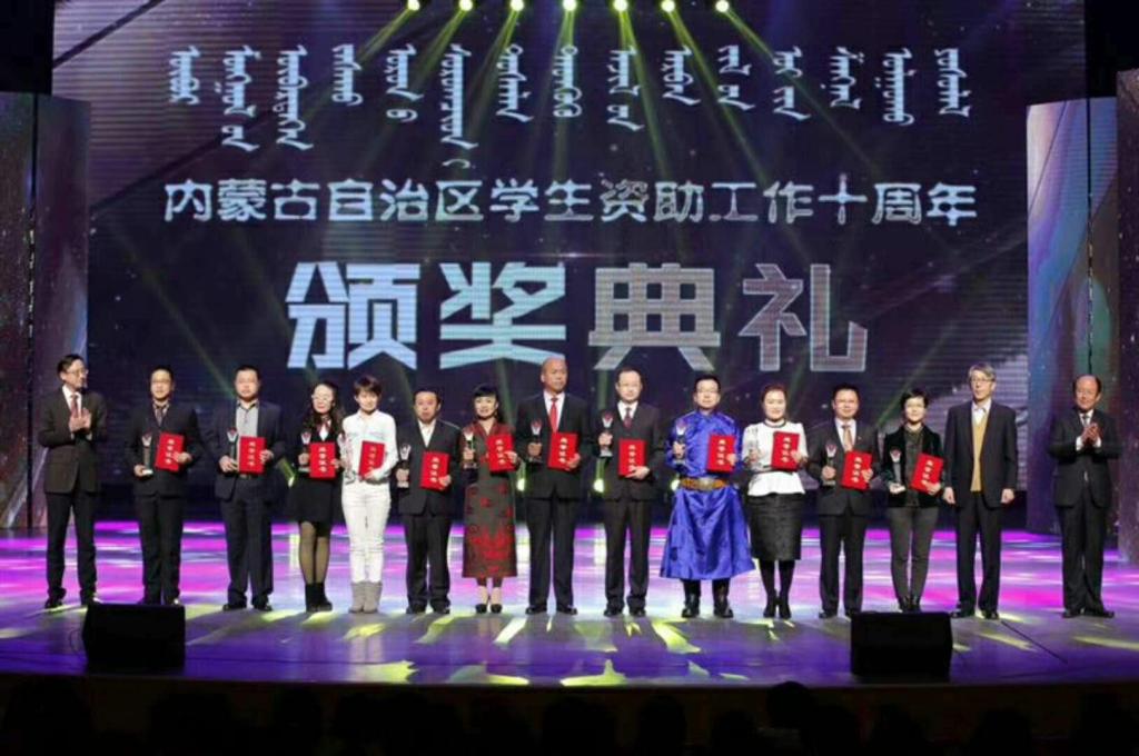 颁奖典礼对内蒙古大学等65个学生资助工作先进单位、学生资助管理中心奖学金管理科科长郭晓飞等170名优秀学生资助工作者代表,以及获得国家奖学金和国家励志奖学金的学生代表予以表彰,同时为国家开发银行内蒙古分行颁发了学生资助特别贡献奖。