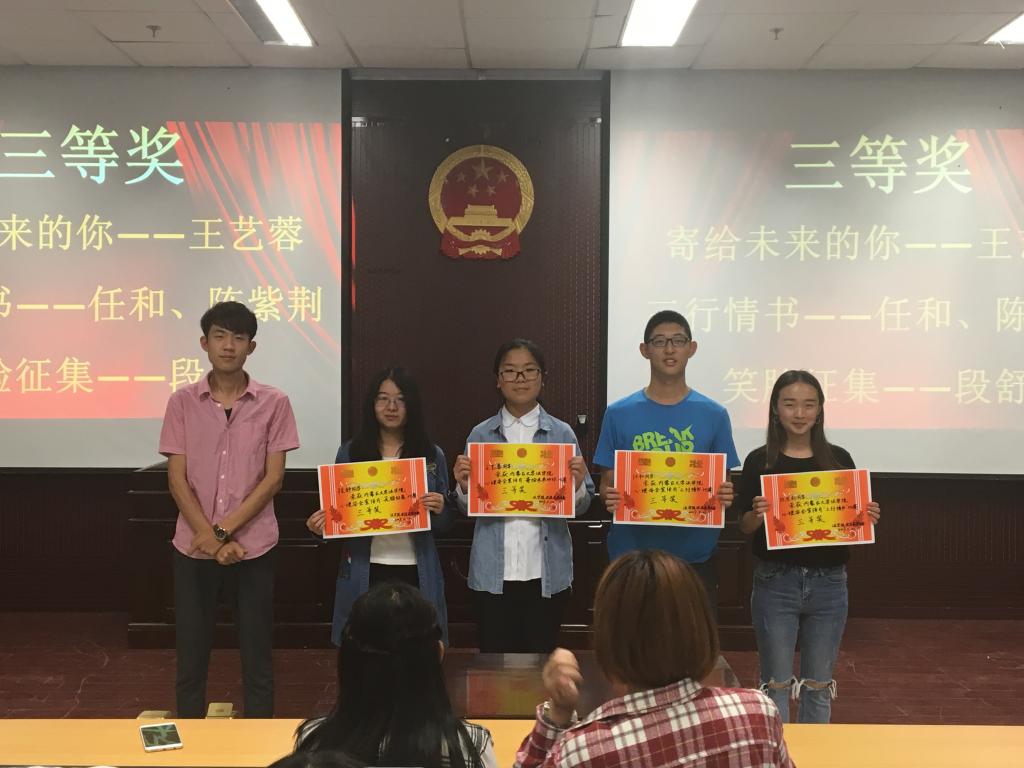 此次评选活动也本着公平公正的原则严格进行。在征集完全部参赛作品后,由内蒙古大学法学院学生会副主席邬莎、乔仁舆,以及心育部部长王亚伟、薛天龙在模拟法庭经过对每个作品严格按照评分标准打分,并经过认真的商讨,最终评选出了三个活动的一等奖、二等奖、三等奖和优秀奖。获得 “寄给未来的你”比赛一等奖的是王俊璞同学,获得 “三行情书”比赛一等奖的是童麟同学,获得 “笑脸征集”比赛一等奖的是胡宗敏同学。