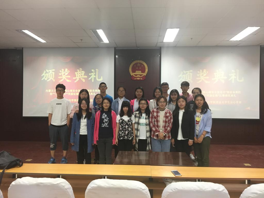 2017年6月5日19:00,由法学院团总支心育部主办的法学院心理安全宣传月活动颁奖典礼在内蒙古大学南校区模拟法庭举行。第十八届法学院团总支学生会副主席邬莎、法学院团总支办公室部长那日力嘎、心育部部长王亚伟出席了本次颁奖典礼。